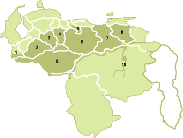 >>Llanos Occidentales: corresponden a los estados Apure, Barinas y Portuguesa. Se dividen en llanos bajos que se inundan en la época de lluvia y los llanos altos a los pies de los andes.