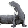 > Descripción: la nutria gigante es, como sugiere su nombre, la más grande de las nutrias del mundo. Una nutria masculina puede alcanzar 2 metros de largo y pesar hasta 32kgs. Las hembras son más pequeñas, pesando alrededor de 26kgs. La nutria gigante tiene una cabeza redonda y sus oídos son pequeños y apenas perceptibles. Bajo el agua pueden cerrar sus orejas y las ventanas de la nariz. Los ojos son grandes y agudos, las patas son musculosas y totalmente palmeadas. La cola es larga y aplanada. Su piel es color marrón oscuro arriba, con una marca blanca en la garganta únicas, con las que se puede identificar a miembros individuales de la especie.
